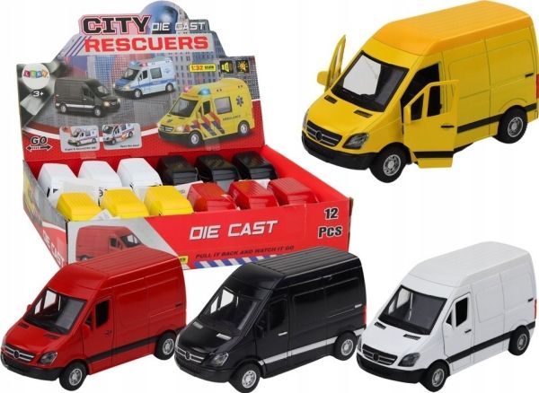 LeanToys skåpbil 1:32 ljus och ljud röd svart gul vit