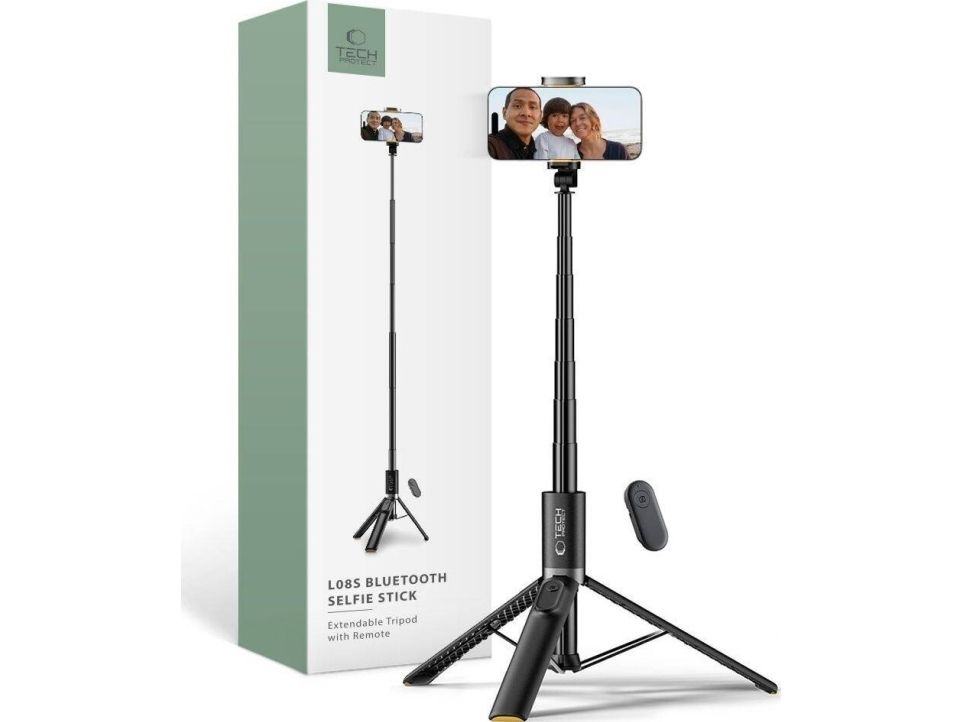 Selfiepåle Tech-Protect L08S Bluetooth med fjärrkontroll och stativ upp till 141 cm svart
