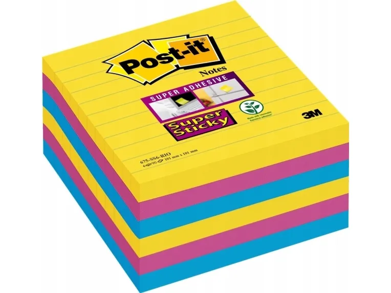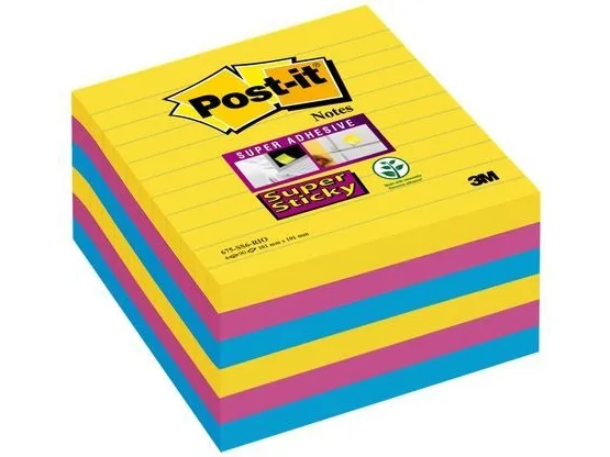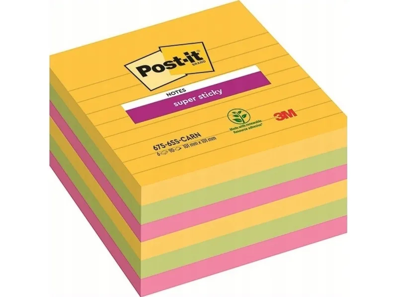 Post-it Super Sticky Large Notes Carnival, linjerede, 101x 101mm, pakke a 6 stk