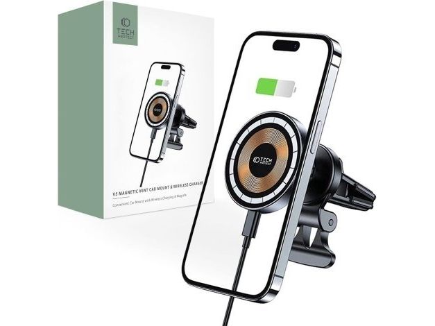 Tech-Protect TECH-PROTECT MM15W-V5 magnetisk MagSafe-bilhållare trådlös laddare 15W svart