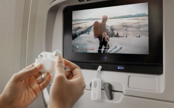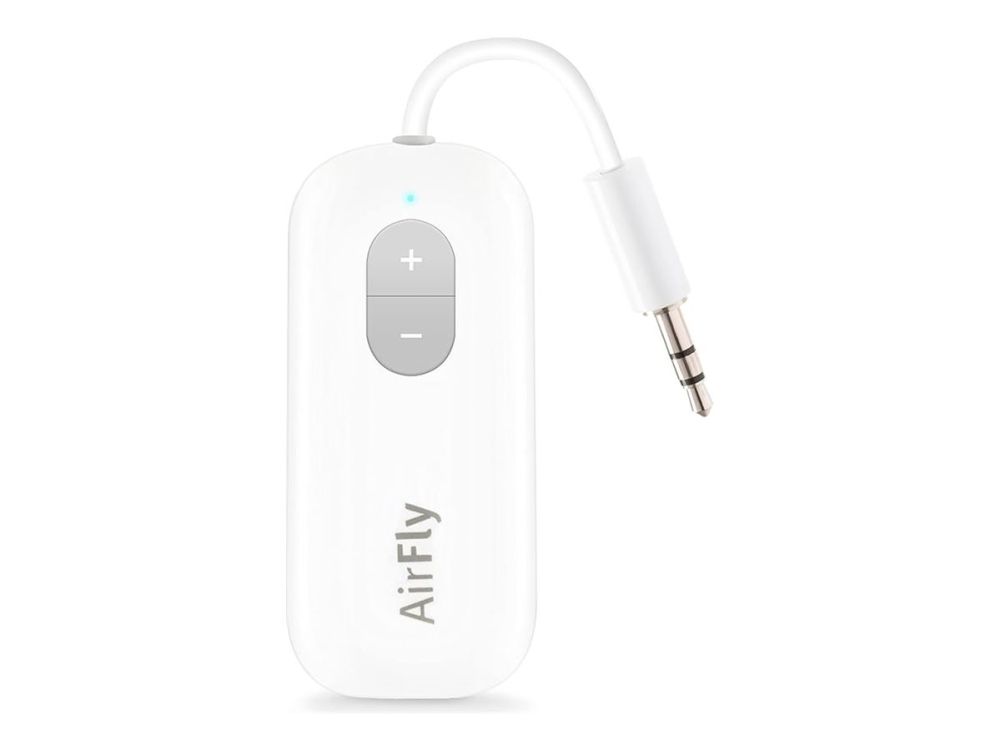 Say goodbye to tangled cords with the Twelve South AirFly Bluetooth transmitter. Seamlessly transmit audio from in-flight entertainment, gym equipment, gaming devices, or any 3.5 mm audio jack to your AirPods, earbuds, or wireless headphones.