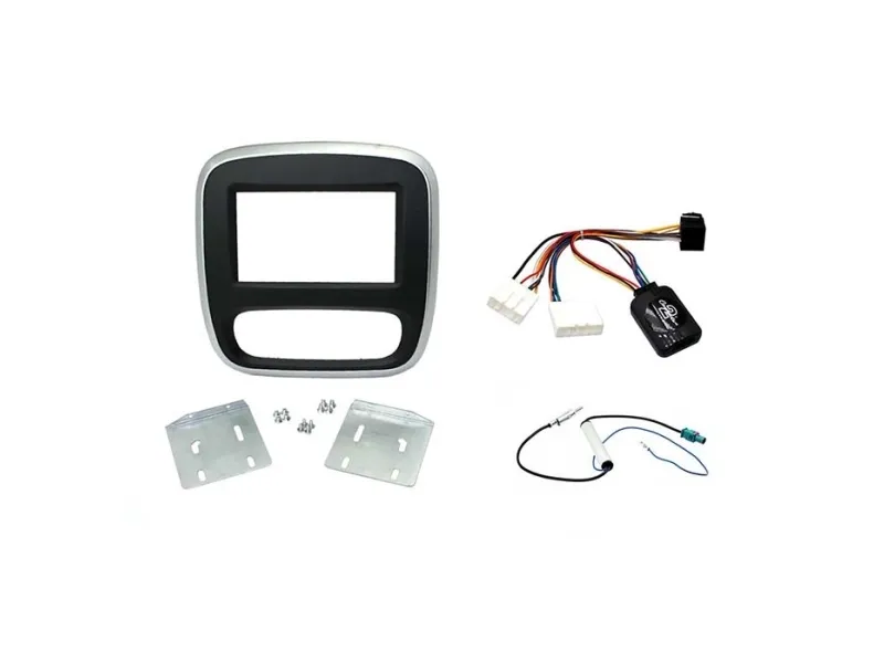 Komplet 2-DIN kit til ny Opel Vivaro 2015& og Renault Trafic 2015&, sort/sølv. Husk LEAD kabel ratbetjening til den enkelte radio.