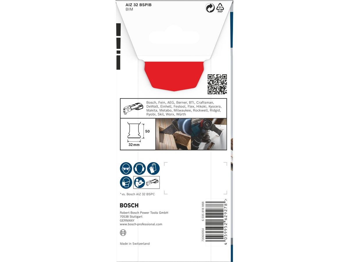 Bosch PRO AIZ 32, Klippskär, Grovt trä, Hårt träslag, Plast, Svart, Grå, Bimetall, Bosch, 32 mm