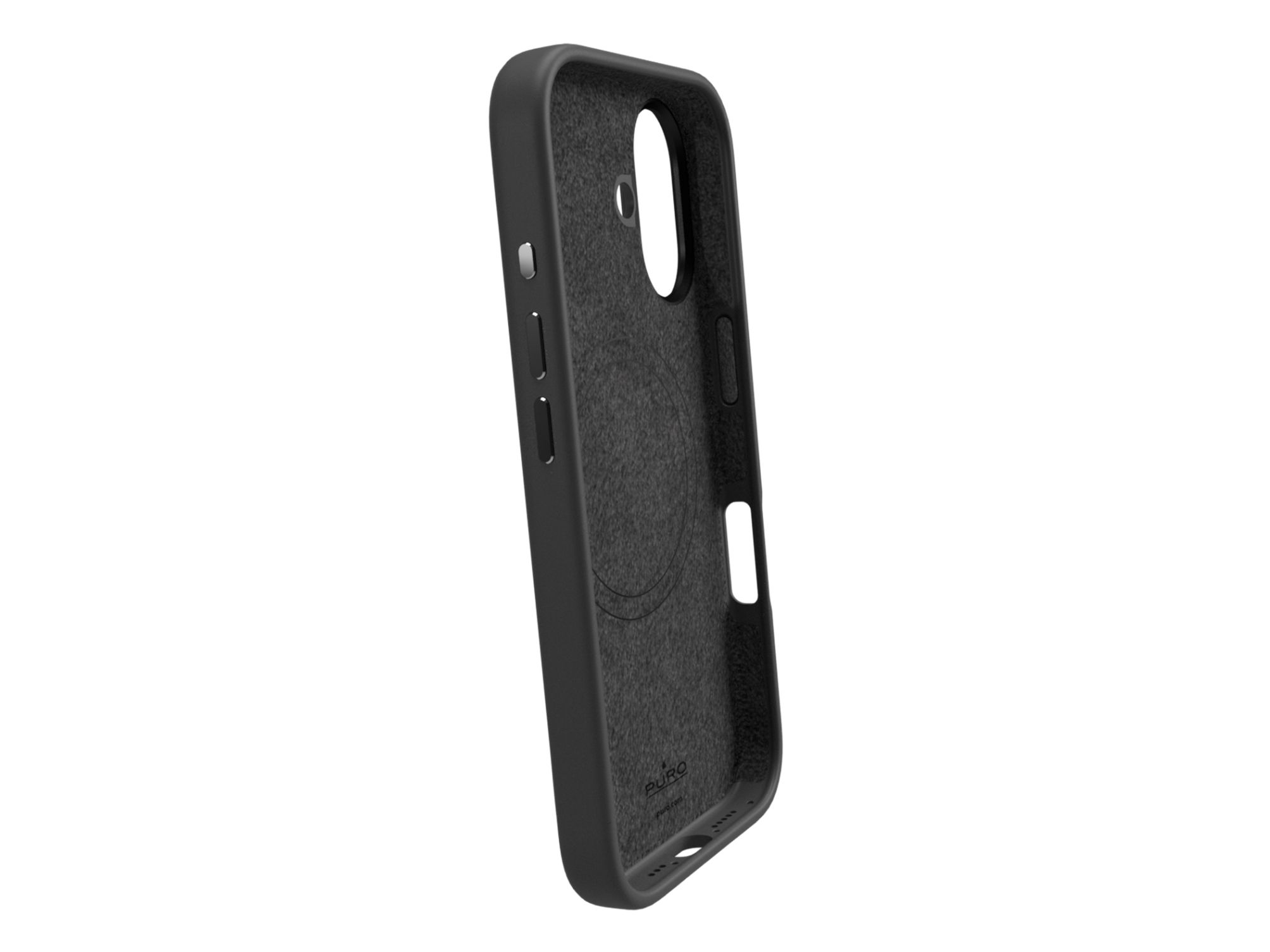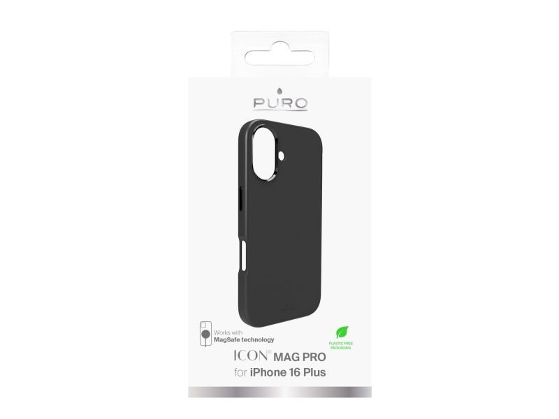 PURO Icon Mag Pro - Baksidesskydd för mobiltelefon - flytande silikon, mikrofiber - svart - för Apple iPhone 16 Plus