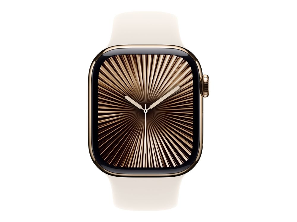 Apple Watch Series 10 (GPS + Cellular) - guld titan - smart klocka med sportband - starlight - 64 GB