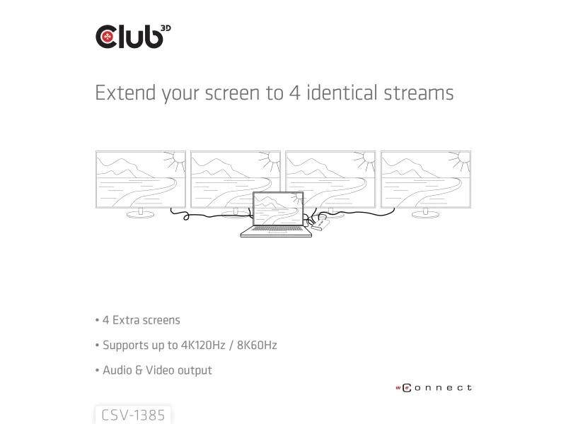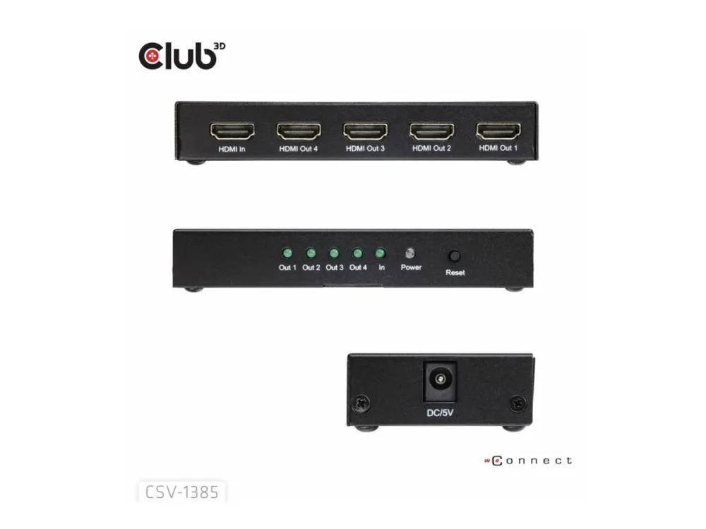 Club 3D CSV-1385 - Video/audiosplitter - 1-to-4, 4K120Hz - 4 x HDMI - skrivbordsmodell
