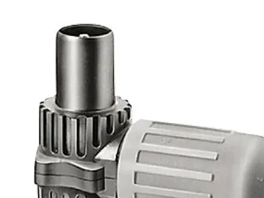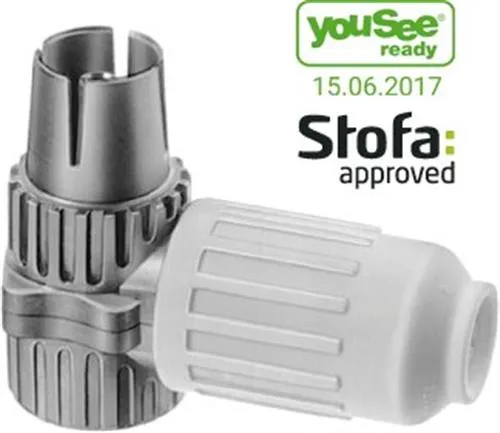 KOKWI 3 IEC coax plug, angled, female. These IEC coax plugs are designed with a view of very easy mounting without compromising technically correct installation.