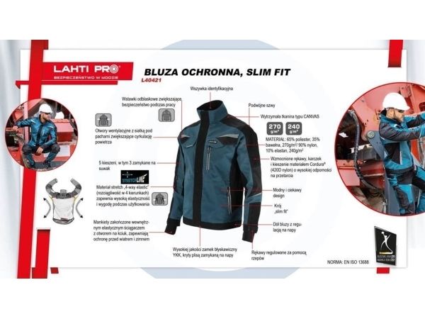 Lahti Pro arbetsblus turkos-svart med stretchinsats, L, CE