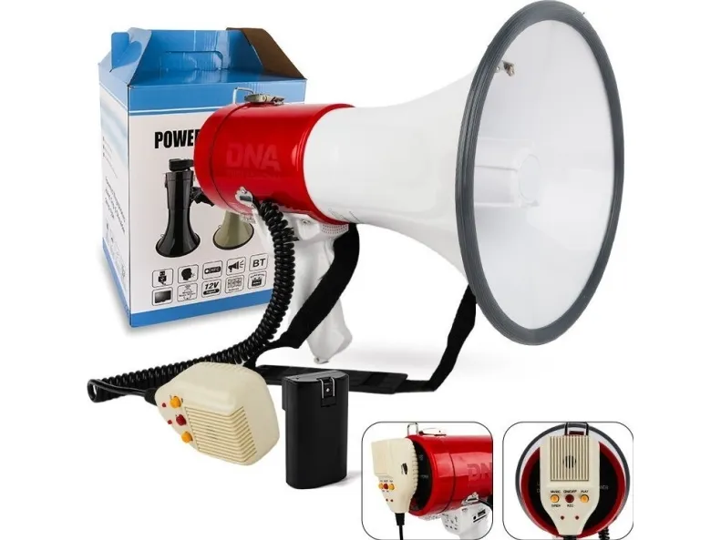 DNA MEGA2 megafonhögtalare 50W röstförstärkare siren USB Bluetooth AUX micro SD