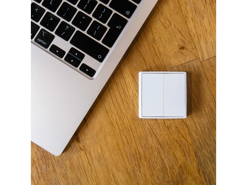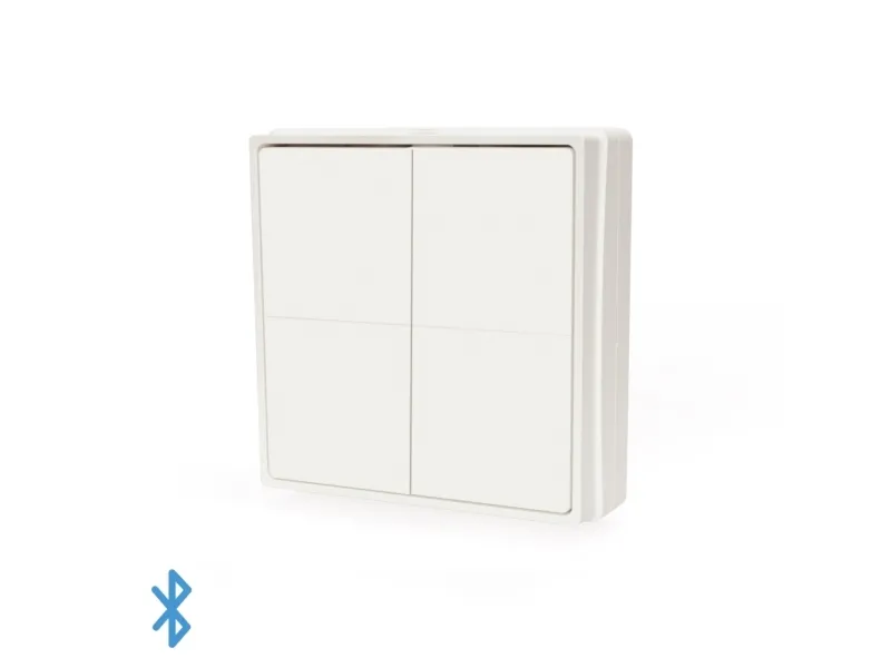 Shelly BLU Wall Switch 4 is a battery-operated Bluetooth button with four buttons, which is installed on the wall. The control button can be set up to control your lights, curtains, garage door, lighting scenes, or something completely different. It comes with a CR2032 battery with an expected lifespan of more than 5 years. Shelly BLU Wall Switch 4 uses Bluetooth technology, which provides lightning-fast response time. To connect Shelly Bluetooth sensors and buttons to the network, the device must use a gateway. For this purpose, the battery unit can use any Shelly Pro, Shelly Plus, or Shelly Gen3 device, or the dedicated Shelly BLU USB Gateway. This means that when you have another Shelly device installed on your WiFi, it will be able to act as an access point for Shelly Bluetooth devices to the network. Shelly BLU Button 4 can perform up to four actions or scenes per button: single, double, triple, and long press. Features: Script functionality provides endless possibilities. Full compatibility with Home Assistant, Homey, and any other device supported by the BTHome protocol. Uses BLE technology. Can turn appliances on/off, dim, and activate scenes. Encrypted wireless signals. Range of 10m indoors and 30m outdoors. Works with Pro, Plus, and Gen3 devices. Important: There are several variants of this battery button. This model is delivered including a frame and backplate, so it is ready to be installed on the wall. The control button is also available in a model without a frame, so you can buy an adapter that enables installation in various EU system standards. If you want this solution, you should use one of the following models: Shelly BLU Wall Switch 4 – without frame: 3800235266892, Shelly Wall Switch Adapter - Gira/Merten/Exxact: 3800235266922, Shelly Wall Switch Adapter - Legrand/Shelly: 3800235266953, Shelly Wall Switch Adapter - Busch-Jaeger: 3800235266946