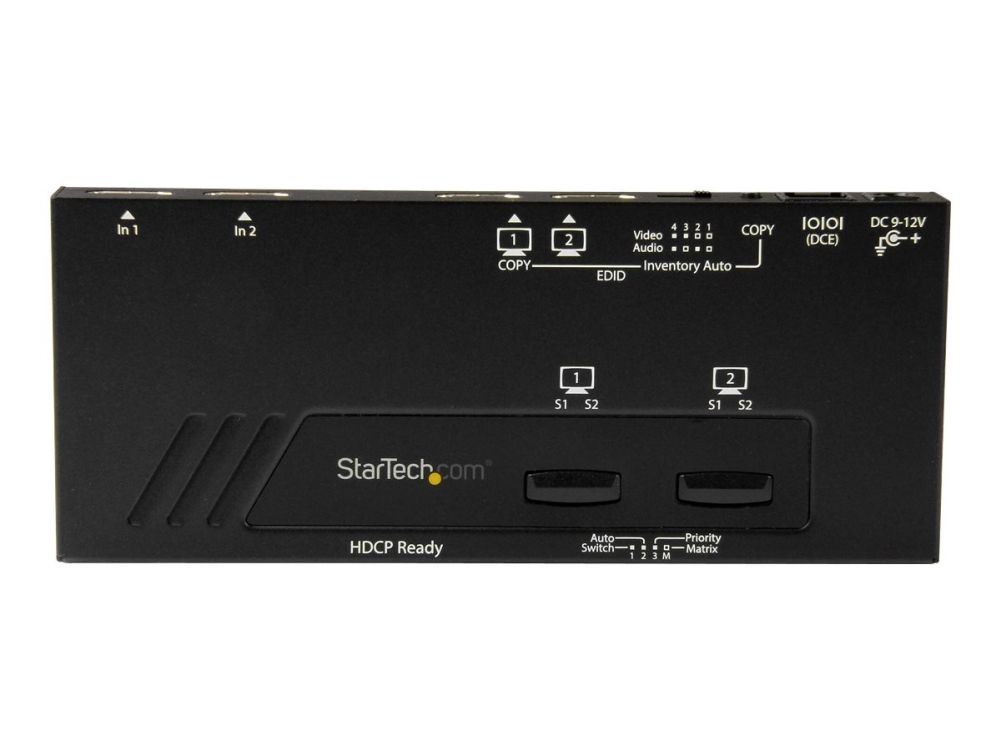 Startech 2x2 HDMI-matrisswitch - 4K med snabbväxling och automatisk avkänning - Video-/ljudomkopplare - 2 x HDMI - skrivbordsmodell