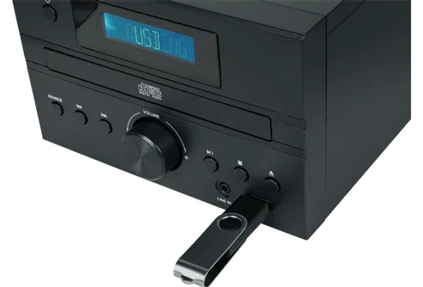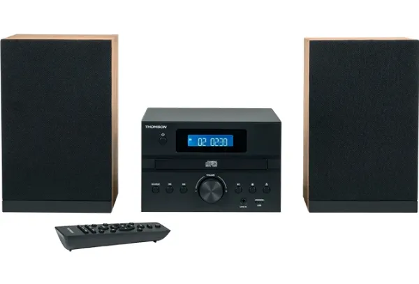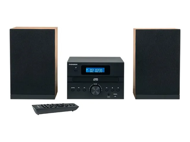Thomson Cosy MIC123BT mikrosystem ger en rik ljudupplevelse med en maximal uteffekt på 50 watt, lämplig för olika lyssningsmiljöer. Med ett frekvensomfång från 60 till 20 000 kHz och total harmonisk distorsion under 1 % ger den en klar och detaljerad ljudåtergivning. Funktioner som basförstärkning, diskantkontroll och en programmerbar spellista förbättrar upplevelsen för musikentusiaster. Systemet är utrustat med Bluetooth 5.0 för trådlös streaming och stöder flera olika mediainnehållskällor, inklusive CD-skivor, USB och MP3-format. De dubbla externa högtalarna ger stereoljud, medan den inbyggda klockan med alarm- och snooze-funktioner är praktisk för daglig användning. Den digitala tunern gör det möjligt att lagra upp till 20 förinställda radiostationer, vilket gör den till ett mångsidigt tillskott till alla ljudanläggningar i hemmet.
