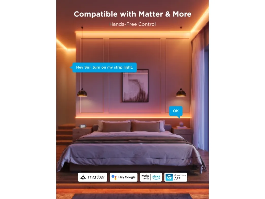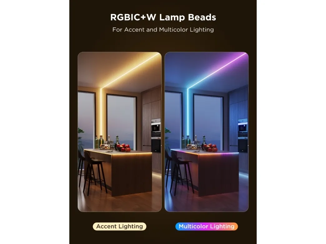 Govee Pro H61E5-ljusslinga är en mångsidig belysningslösning för alla utrymmen, till exempel garderober, barer, trappor, hemmakontor och studior. Tack vare den utdragbara och kapbara designen är det enkelt att anpassa den efter behov, så att användarna kan justera längden och formen efter sina behov. Den har inbyggd DreamView Syncing-teknik, som möjliggör synkroniserade färgförändringar med underhållningskällor för en uppslukande upplevelse.