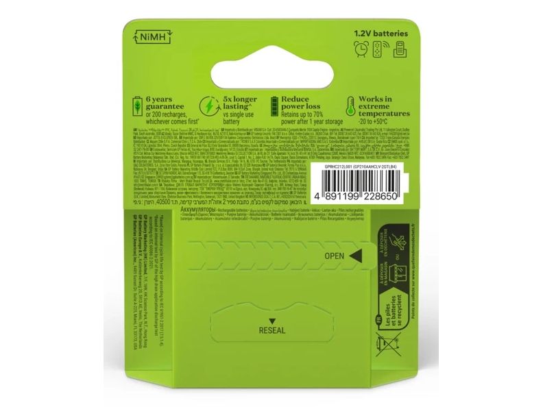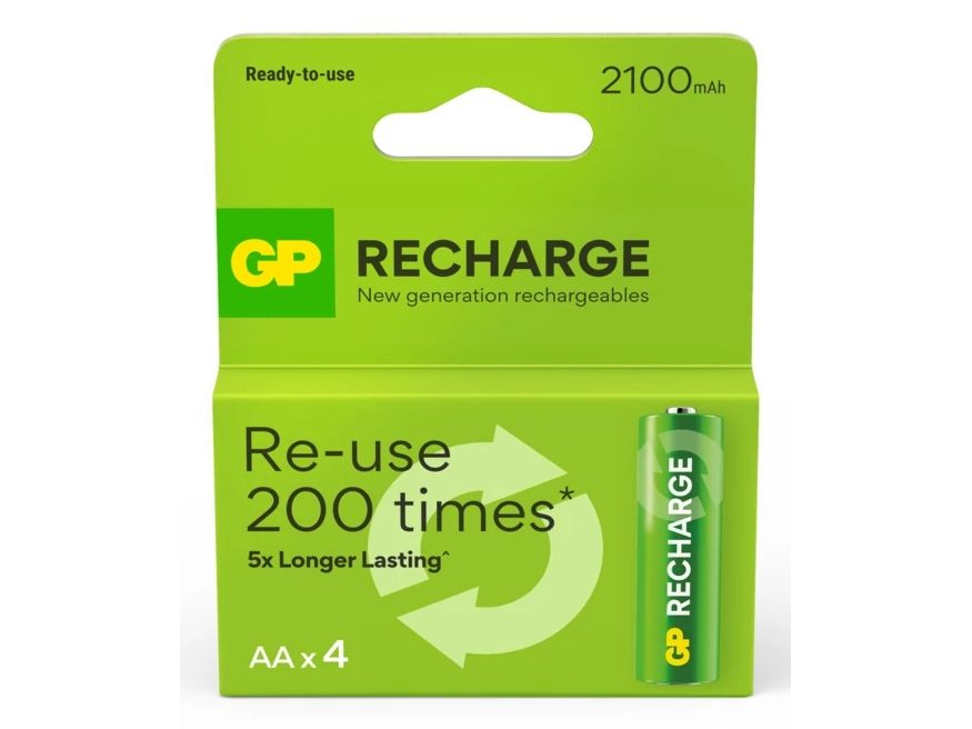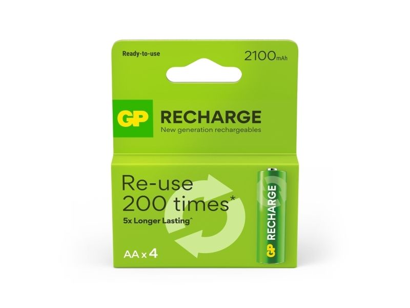 GP Batteries GP Recharge 210AAHCLV 4-P 2100mAh, Laddningsbart batteri, AA, Nickel-metallhydrid (NiMH), 4 styck, 2100 mAh