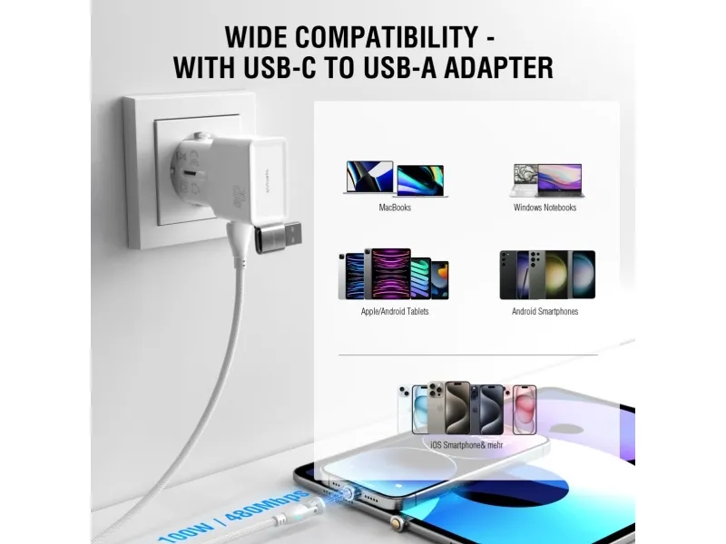 4smarts 541236, 1,8 m, USB C, USB C, USB 2.0, 0,48 Gbit/s, Vit