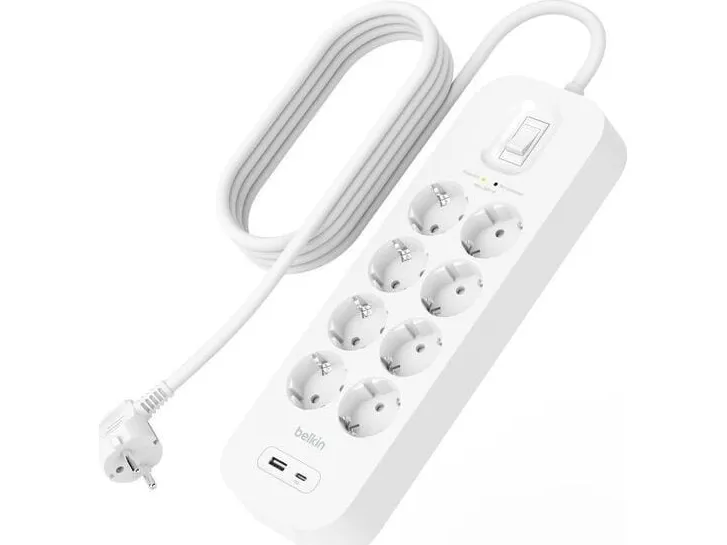Belkin Connect - Överspänningsskydd - med USB-C- och USB-A-portar - utgångskontakter: 8 - 2 m sladd