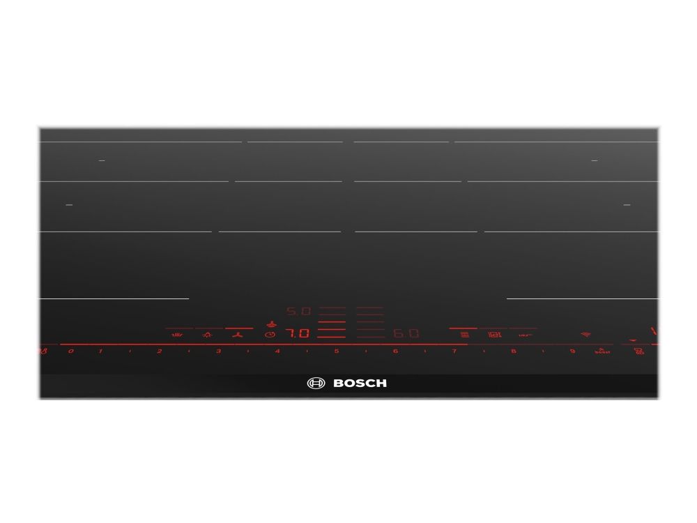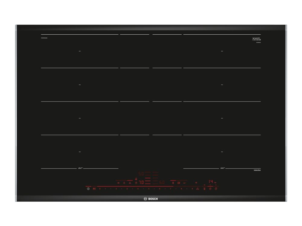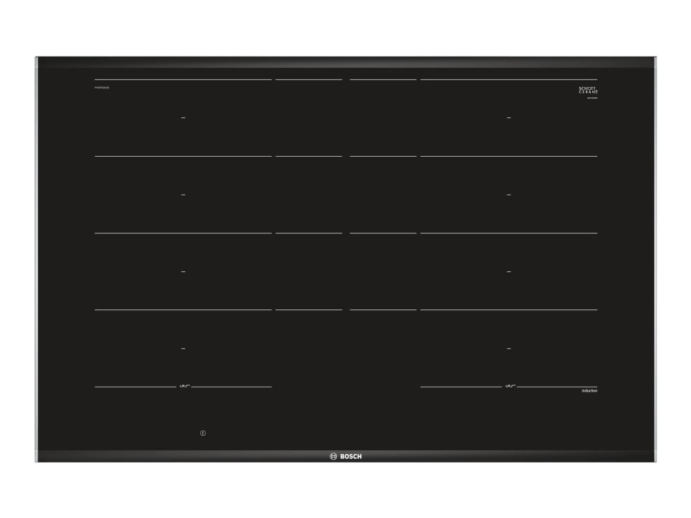 Bosch Serie | 8 PXY875DW4E induktionshäll - 80 cm - svart - keramik - med sidokanter i rostfritt stål, facetterade fram- och bakkantslister