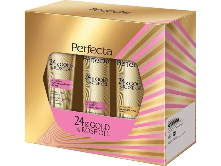 Perfecta 24K Gold & Rose oil peelingskrubba 75g + tonic 200ml + mjölk för sminkborttagning 200ml