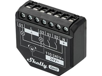 Shelly 2PM Gen3 är ett WiFi-styrt 2-kanals relä, i första hand lämplig för automatisering av jalusier, persienner, markiser och alla tvåvägs AC-motorer. De två integrerade effektmätarna gör det möjligt att mäta förbrukningen för varje kanal separat (PM = Power Metering), vilket gör enheten även idealisk för att styra två kanaler med ljus eller två uttag. Enheten klarar upp till 10A per kanal och max 16A totalt. Shelly Plus 2PM är designad för installation bakom strömbrytaren, uttaget eller lamputtaget och passar i de flesta vägg- och takboxar tack vare sin kompakta design. Shelly 2PM Gen3 är lätt att ställa in och styra via Shelly Smart Control-appen eller ditt föredragna Smart Home eller Smart Building-system. Shelly-enheter fungerar till 100 % lokalt och kräver bara ett lokalt nätverk för att fungera. Shelly kan användas ensam i Shelly Smart Control-appen eller med mer än 200 partnersystem som Google Home, Amazon Alexa, Home Assistant, Samsung SmartThings, Athom Homey, KNX och många fler. Funktion Shelly 2PM Gen3 har många applikationer. Den kan drivas med 24V DC eller 110-230V AC. Shelly 2PM har två switchingångar, som är valfria att använda. Enheten mäter automatiskt strömförbrukningen på varje kanal, vilket kan övervakas via Shelly Smart Control-appen och enkelt användas för automatiseringar. Shelly 2PM kan användas till många ändamål såsom: Tvåkanalig ljusstyrning, Socket control, Styrning av jalusier, persienner, markiser, garageportar och liknande. Anslutning Shelly 2PM Gen3 kan ansluta till internet eller det lokala nätverket via 2,4 GHz WiFi. Dessutom har enheten inbyggd Bluetooth som resten av Pro-, Plus- och Gen3-enheterna, så den kan också användas som en gateway för Shelly Bluetooth-batteridrivna enheter. Alla Shelly-enheter fungerar lokalt utan anslutning till Shelly Cloud, men det rekommenderas att aktivera det för enkel datalagring och ökad funktionalitet. Enheterna kan också kommunicera via MQTT, HTTP och WebSocket. Alla stöder TLS. Hårdvara Enheten är utrustad med generation 3 hårdvara, som inkluderar den kraftfulla ESP-Shelly-C38F CPU med 8MB blixt. Detta gör Shelly 2PM Gen3 framtidssäker och möjliggör skriptfunktioner och virtuella enheter för avancerad och anpassad funktionalitet.