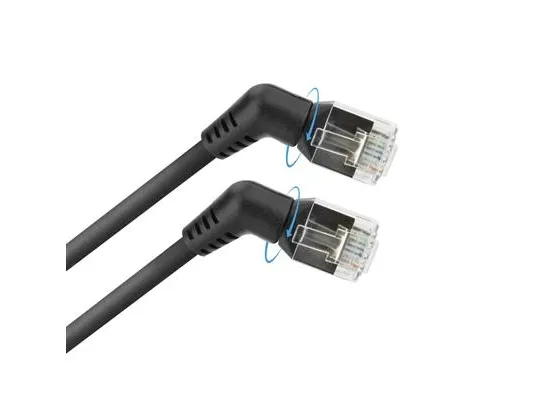 Black 7 meters U/FTP CAT6A Slimline patch cable with angled 360° rotatable RJ45 connectors