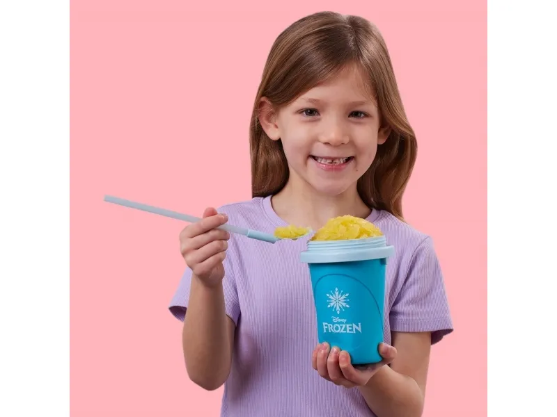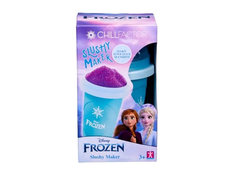 ChillFactor Slushy Maker Disney Frozen Elsa är perfekt för fans av Frozen. Dess isblå färger representerar Elsas ikoniska dräkt och ett isbergsformat lock.