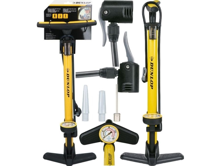 Dunlop verkstads-/cykelpump Dunlop 160 psi (11 bar) med manometer gul