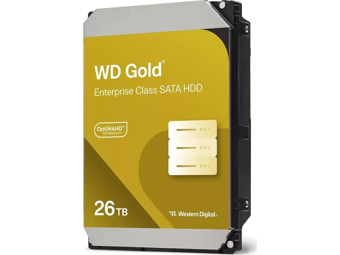 The WD Gold 26 TB internal hard drive is engineered for enterprise-level reliability and performance. With a capacity of 26 TB, this hard drive is ideal for demanding applications that require large storage and fast data access. Advanced features include OptiNAND technology and conventional magnetic recording (CMR) for performance, while the HelioSeal design enhances data integrity and reliability under varying temperature conditions. With a data transfer rate of 600 MBps and a spindle speed of 7200 rpm, the WD Gold is optimized for high-capacity environments.