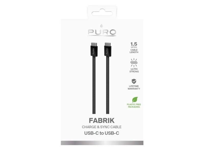 PURO PUCCCFABK415MTBLK, 1,5 m, USB C, USB C, USB 2.0, 0,48 Gbit/s, Svart