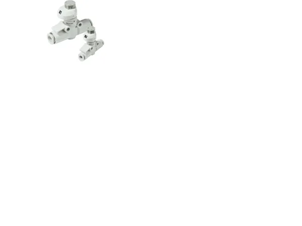SMC series AS*002F, in-line type, compact speed controllers with built in one-touch fittings minimize installation time, reduce mounting height, and enable a more compact machine design. These speed controls can be mounted in 4 variations (direct mounting, L-bracket mounting, DIN rail mounting and holder mounting). Available tube sizes range from 3.2mm to 12mm OD (metric) and 1/8 to 1/2 OD (inch). The AS*002F speed control series is RoHS compliant.