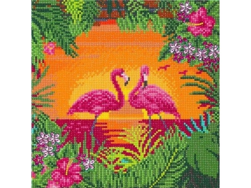 Canvasmålning 30x30 cm med mosaik Flamingos
