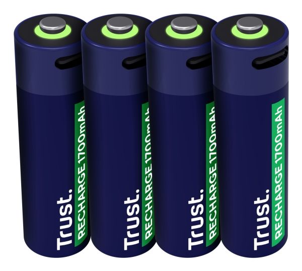 Trust 25631, Uppladdningsbart batteri, AA, 4 st, 1700 mAh, 2 h, Kortslutning