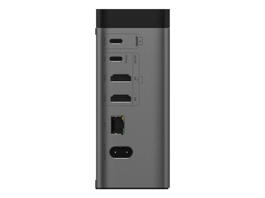 GaN-teknik (galliumnitrid), stöd för tre bildskärmar, 96W strömleverans, upp till 10 Gbps dataöverföring, brandsäkert hölje, överspänningsskydd, överbelastningsskydd, överspänningsskydd, kortslutningsskydd, DisplayPort Alt Mode, strömstatus-LED