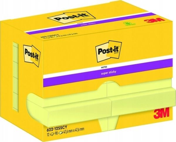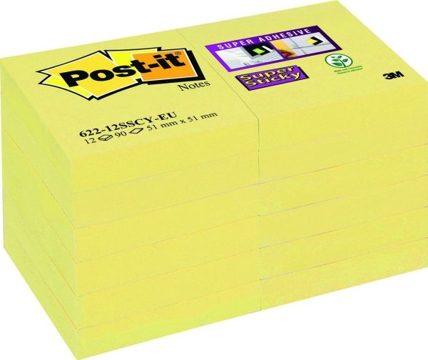 Post-It 3M Super Sticky (622-12SSCY-EU) gula anteckningslappar, 47,6×47,6 mm, 12×90 ark