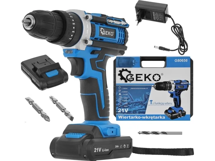 Geko borrmaskin/skruvdragare Borrmaskin med slagverk 21V 2x 2ah batteri (10)