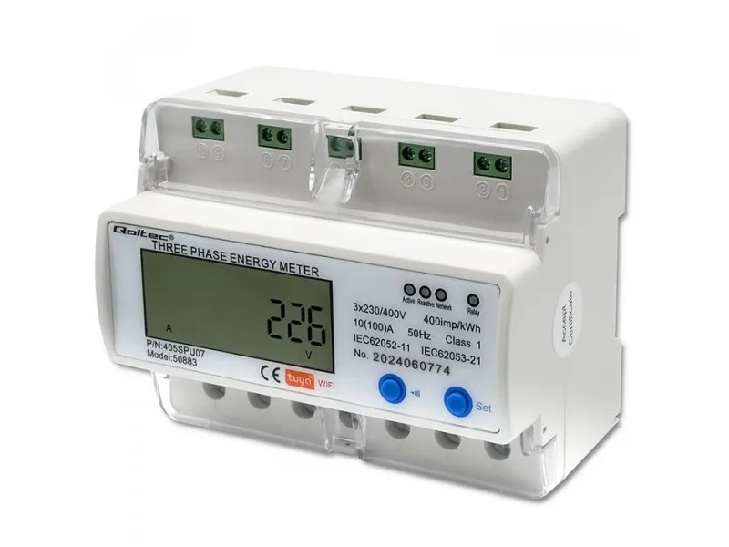 Qoltec - Strömmätare - 3-fas, DIN-skena, 230/400V, LCD - trådlös - Wi-Fi - grå