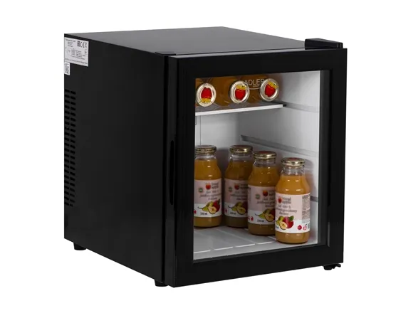 Net capacity: 28L Glass door, Glass shelf- 1pcs, Black color Cooling capacity: 5°C (under ambinet temperature 25°C) , Soft interior LED light Voltage: 100-240V 50/60Hz