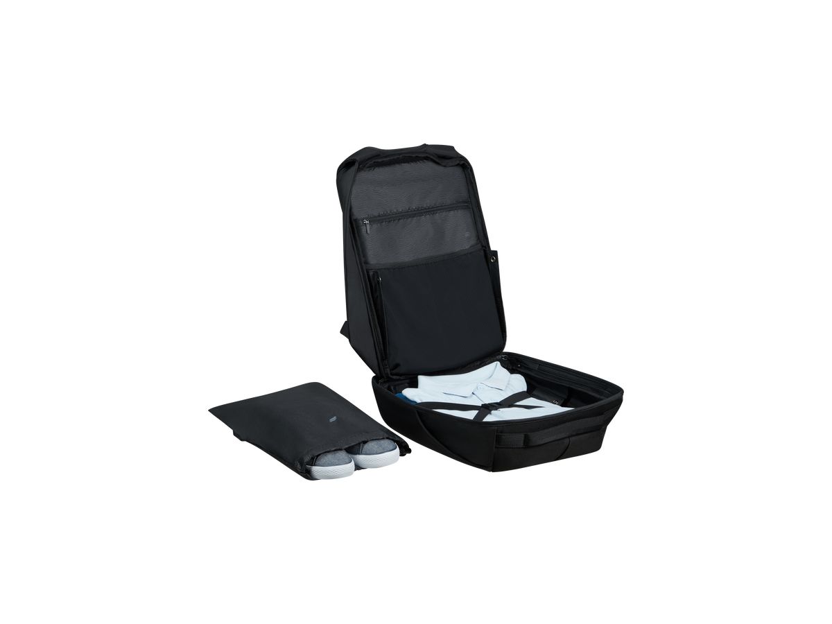The Samsonite Securipak 2.0 notebook carrying backpack combines functionality and design to meet the needs of modern travelers. With a capacity of 24.5 liters, it features multiple compartments, including an RFID protected pocket for added security for your valuables. The ergonomically designed shoulder straps and a top carrying handle ensure comfort whether carried on your back or by hand. This water-resistant backpack is made of 99% recycled PET fabric, combining durability with an environmentally friendly focus.