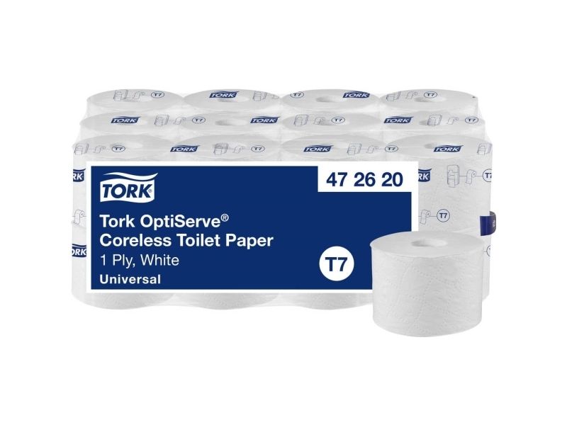 Tork OptiServe toalettpapper utan innerkärna T7 universal, 1-lagers, vit