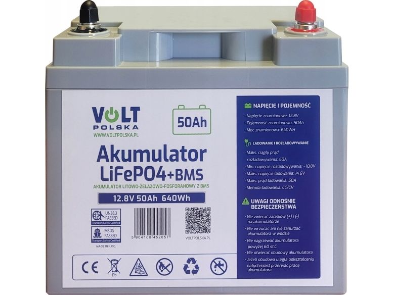 Volt-batteri LiFePO4 12,8V 50 Ah (50A) + B