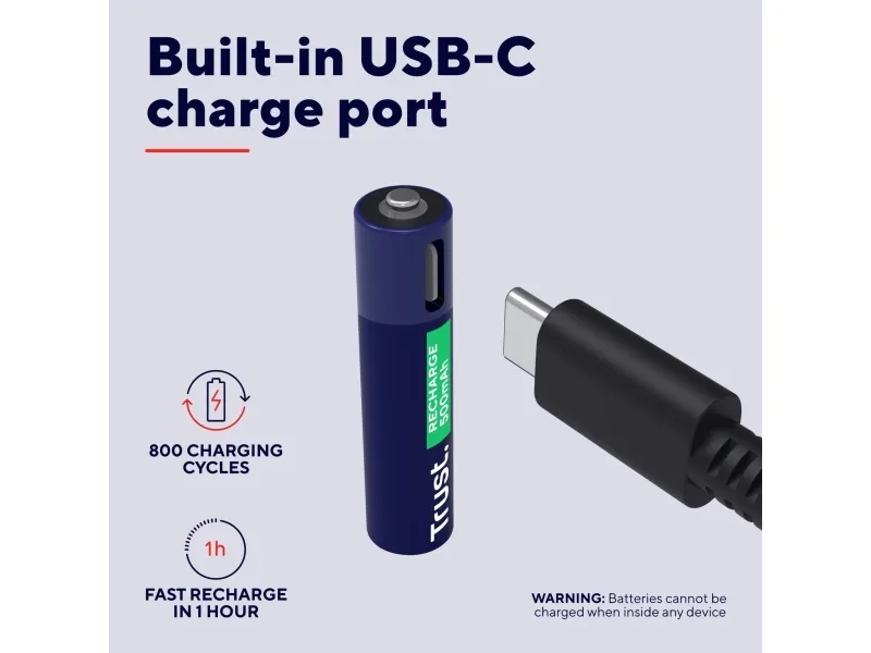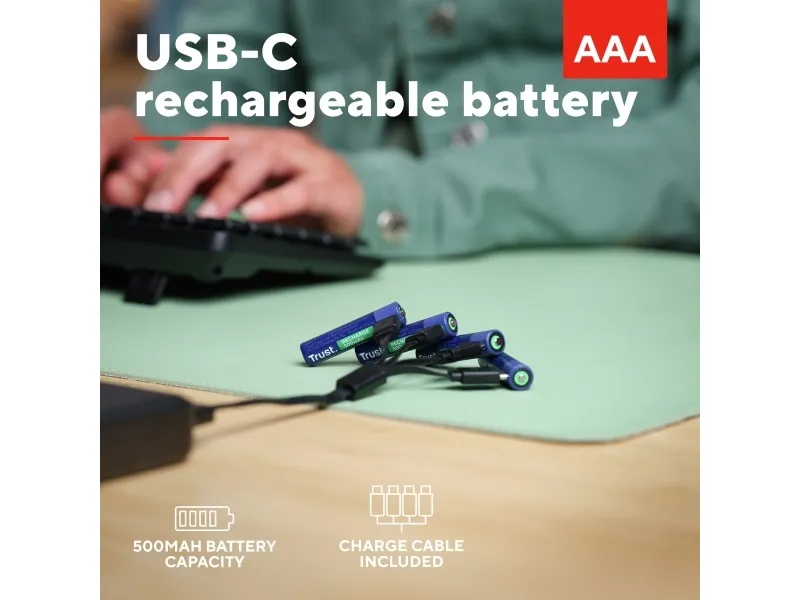 Trust - Batteri - USB-C + batteri 4 x AAA - (uppladdningsbara) - 500 mAh