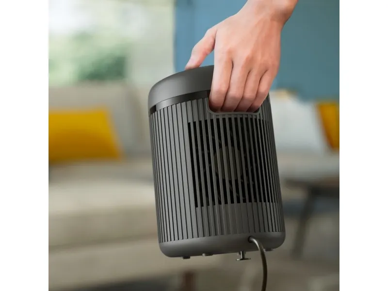 The Philips CX2120 is functional with its carry handle, making it easy to move from room to room. With compliance to VDE, UKCA, and IEC standards, this heating fan assures safety and performance. Its 1.5 m cord length provides flexibility in placement, fitting seamlessly into any layout. Warm up your space efficiently and safely with the Philips 2000 series CX2120 heating fan.