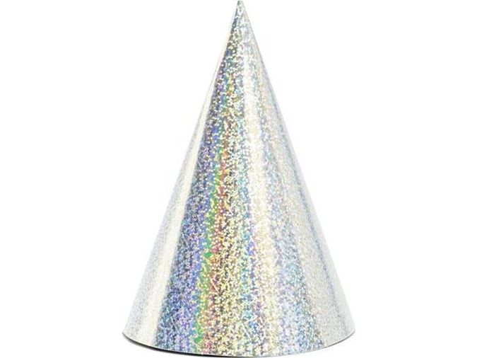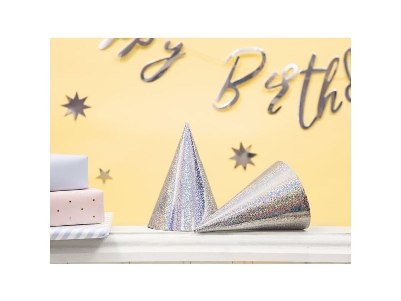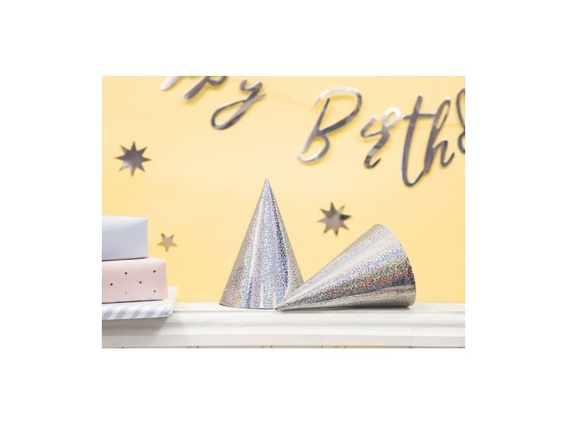 Party Deco festmössor holografiskt silver, 17 cm, 6 st (universell)