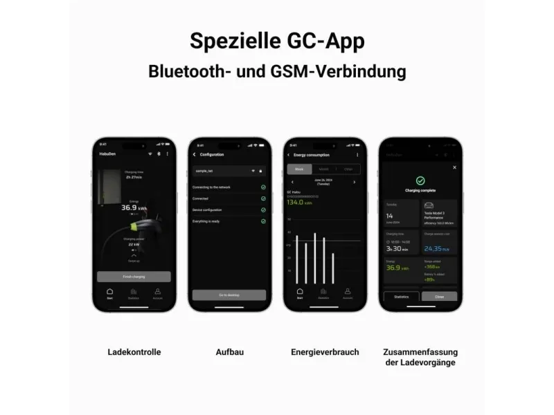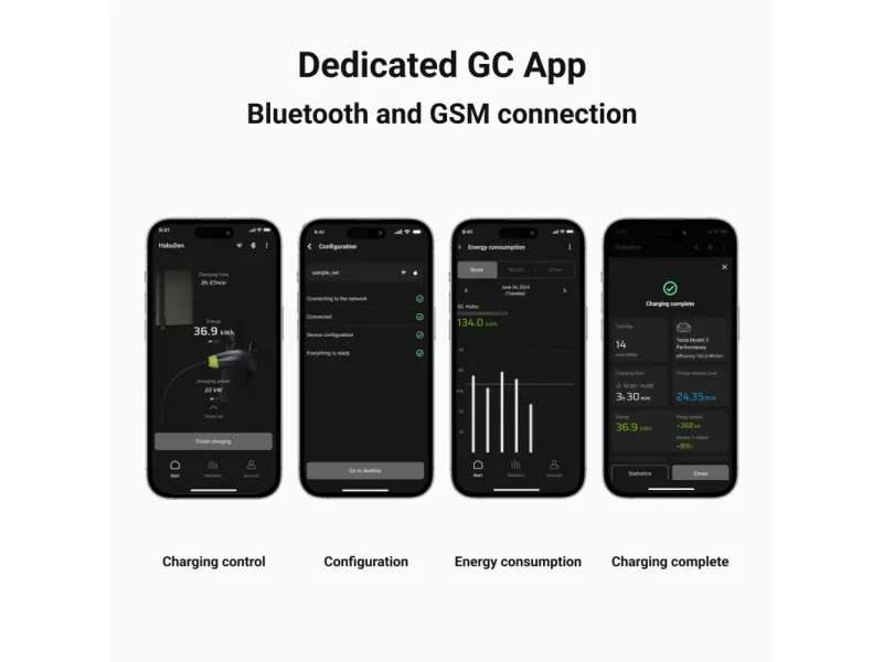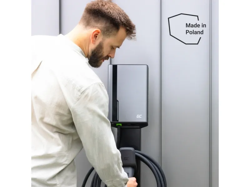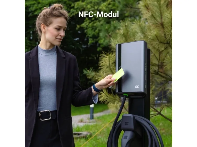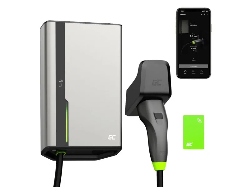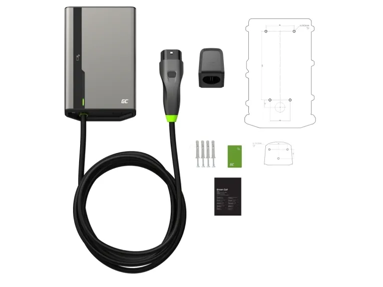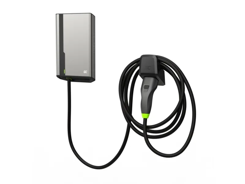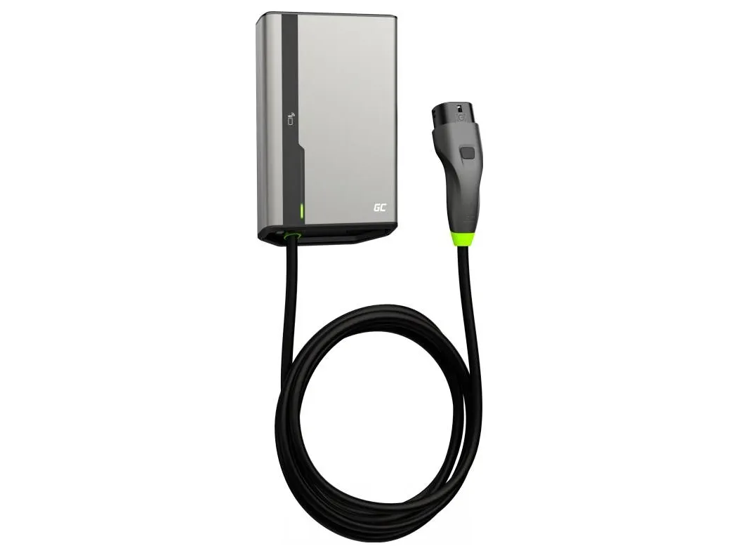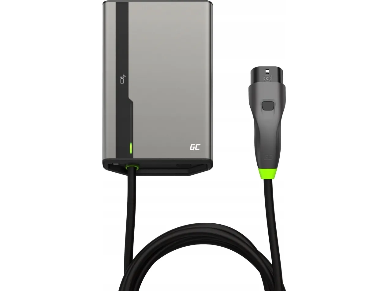 Green Cell GC EVGC021B2250 - Wallbox, 3,6 - 22 KW, 5 m, NFC. Product colour: Grey, Mounting type: Wall, Housing material: Aluminium. Mechanical impact protection code: IK10, International Protection (IP) code: IP54, Vehicle charging standard: Mode 3. Power source type: AC, Maximum charging power: 22000 W, Single-phase output voltage supported: 230 V. Charging cable length: 5 m, Width: 211 mm, Depth: 73 mm