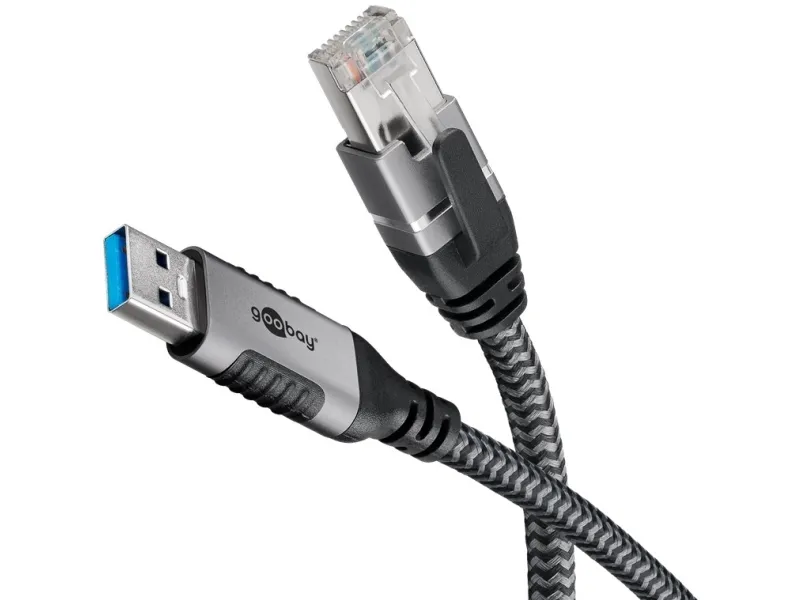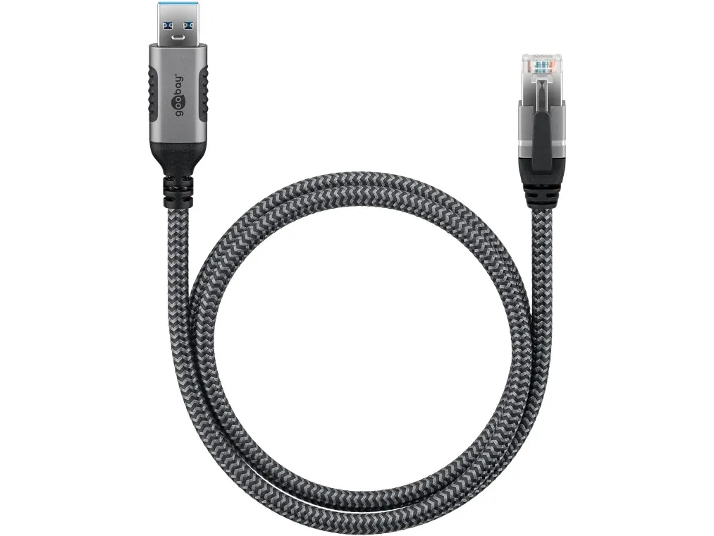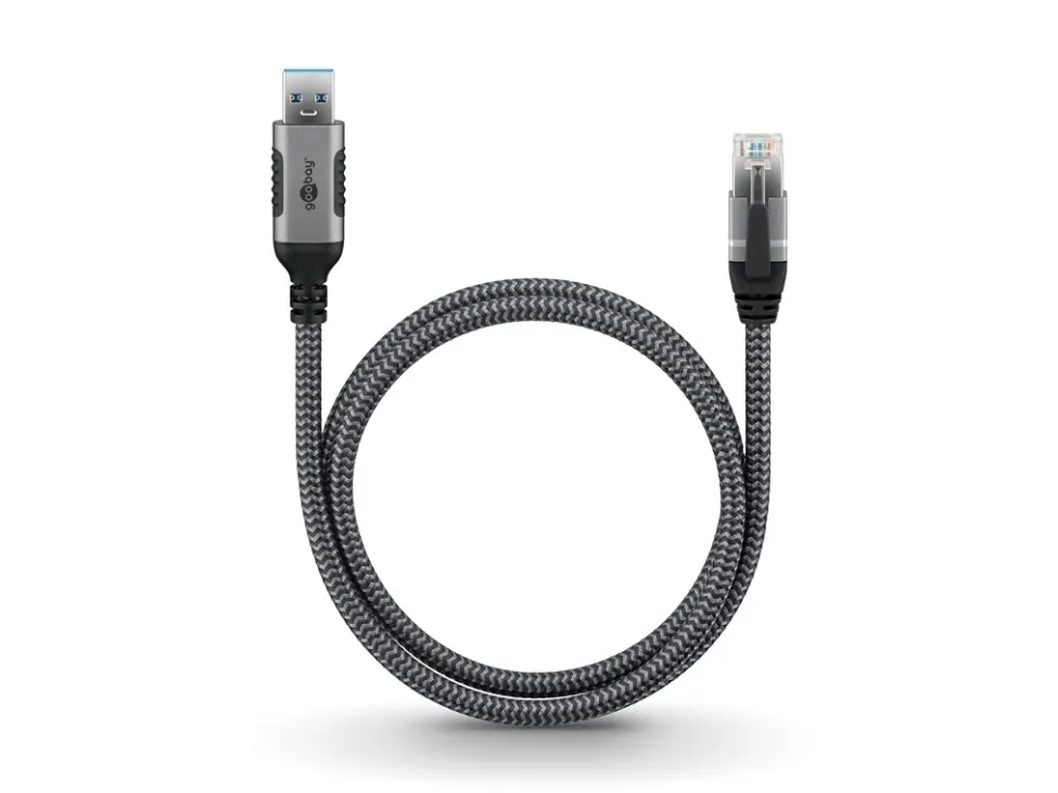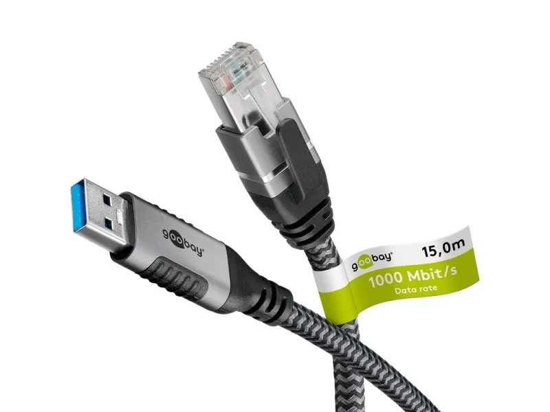 Goobay 70695, USB A, RJ-45, 15 m, Svart, Silver