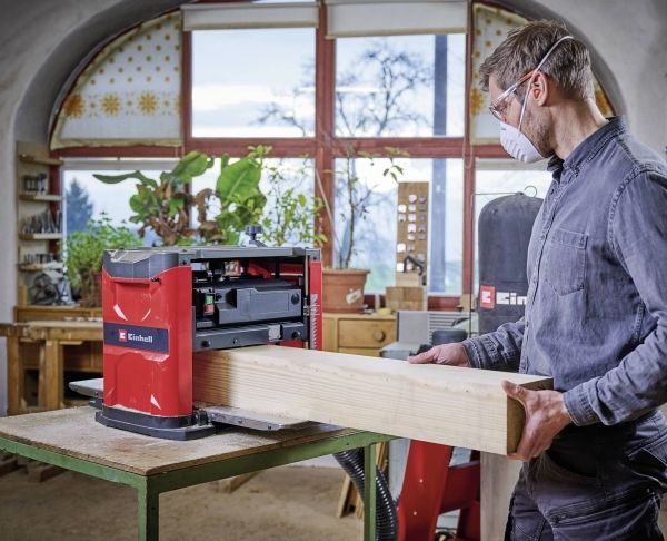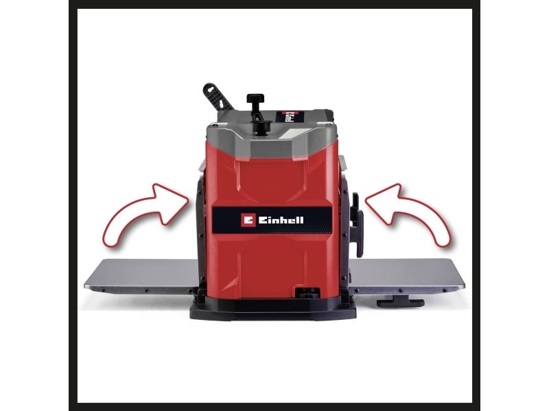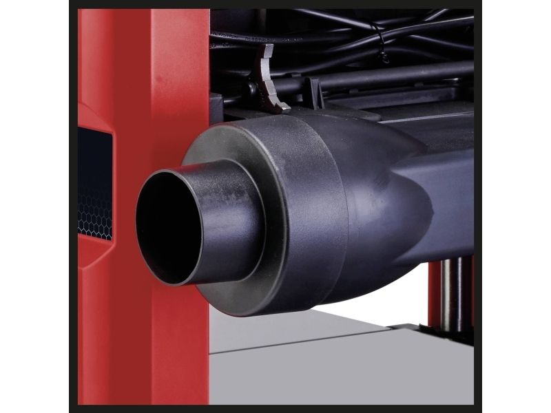 Solid and torsion-resistant 4-column construction 2 sharp reversible planing knives for smooth surfaces Sturdy stainless steel infeed and outfeed tables Precise chip thickness adjustment with scale Depth scale for measuring the cutting depth Planing unit lock to prevent unintentional adjustment Planing removal finely adjustable by hand crank Safe use thanks to zero voltage switch Handles for mobile transport 2 ergonomic carry-handles for mobile transport Mains supply: 220-240 V | 50/60 Hz Power: 1,800 W Idle speed knive shaft: 10,000 min^-1 Max. material removal at tickness planing: 3 mm Max. thickness opening: 153 mm Feed rate: 8.4 m/min Size of thicknessing table: 280 x 330 mm Size of table enlargement front: 285 x 332 mm Size of table enlargement rear: 285 x 332 mm Diameter of suction adapter: 100 mm