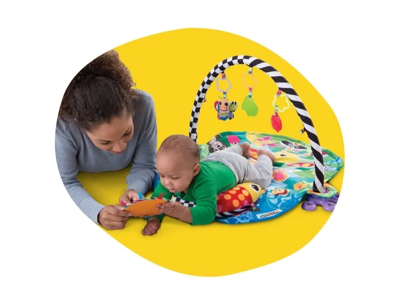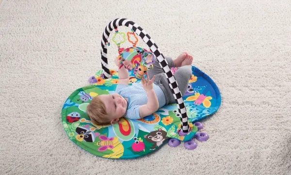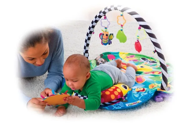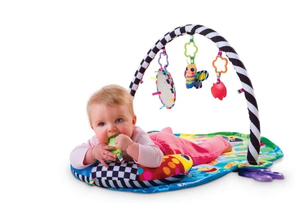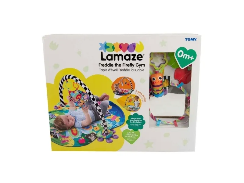 There are three fun ways for your baby to explore Lamaze’s Freddie Firefly Gym. With brightly coloured pictures and patterns to encourage sensory discovery, baby will love to kick around lying on the mat. Baby can reach for the three detachable toys that are featured on the arch, strengthening baby’s eyes.