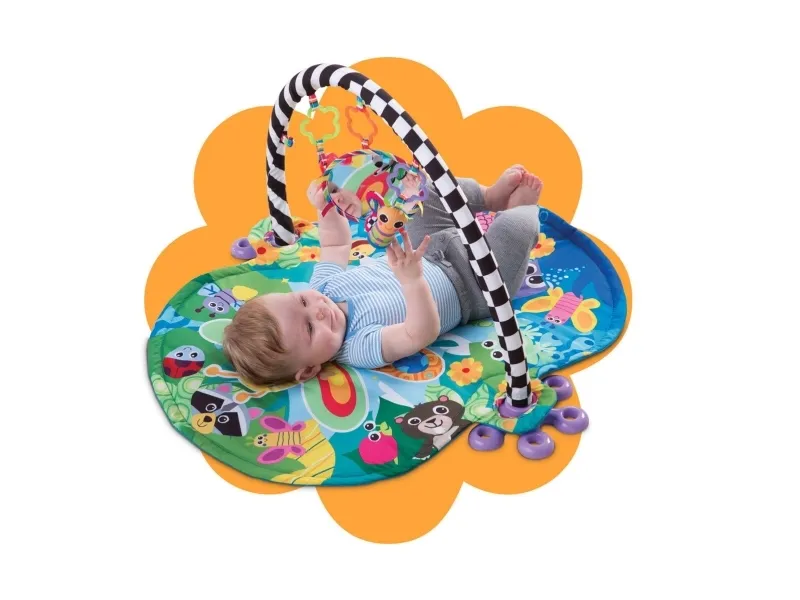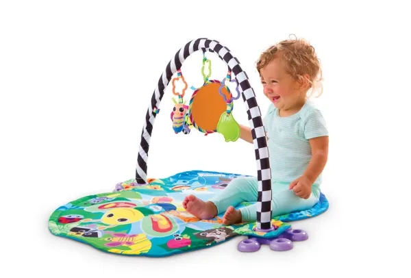 Freddie the Firefly’s symmetrical happy face and crinkly wings will capture baby’s attention. Play peekaboo with the large discovery mirror promoting baby’s recognition of themselves and you. The soft apple teether is perfect for teething babies. The comfy 2-in-1 pillow will help to support your little one during tummy time, and when baby begins to sit, the comfortable padded mat provides a soft surface to play. Suitable from birth onwards.