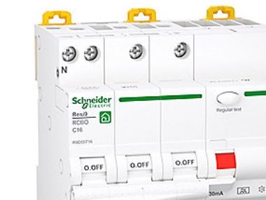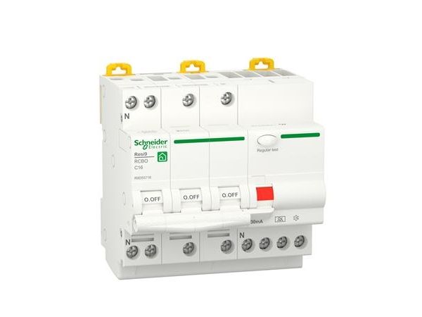 Resi9 XP RCBO/kombinationsbrytare 3PN C-karaktär 16A 6kA 30mA klass A 90mm