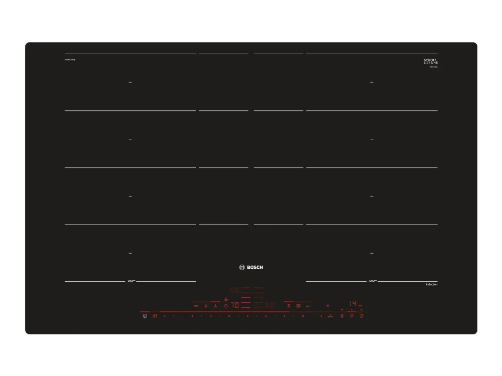 Bosch Serie | 8 PXY801DW4E - Induktionshäll - 4 kokplattor - Fördjupning - bredd: 78 cm - djup: 50 cm - slät - svart