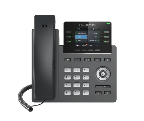 The GRP2613(W) features 24 virtual multi-purpose keys (VPKs), integrated Wi-Fi 6 (GRP2613W), dual Gigabit ports, a color LCD with swappable face plates for easy logo customization, and more. It is supported by Grandstream’s Device Management System (GDMS).